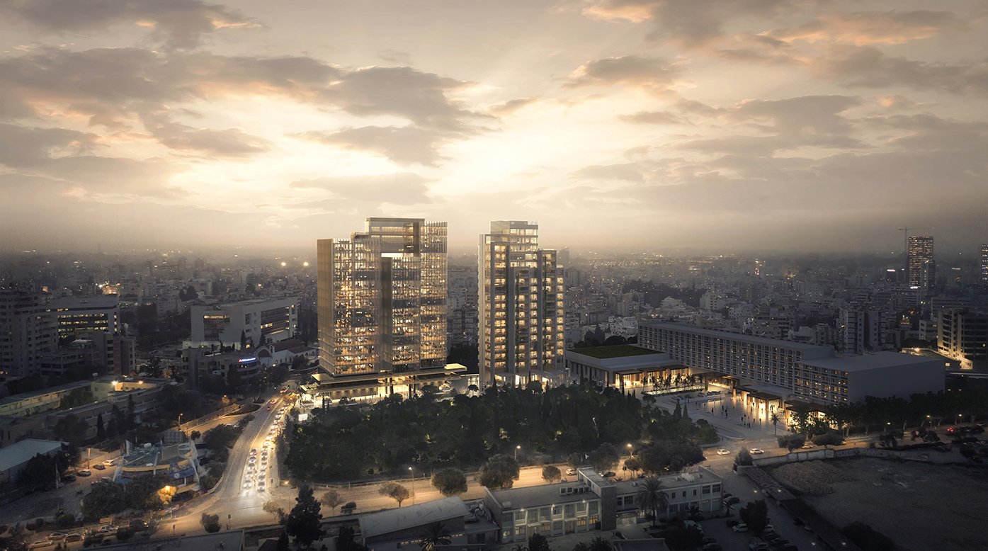 The Project aims to create a new landmark for the capital of Cyprus, which will host a 16-floor office building, a 17-floor apartment building, a private 1500m2 square for public use and the refurbishment of one of the most legendary hotels in Cyprus.